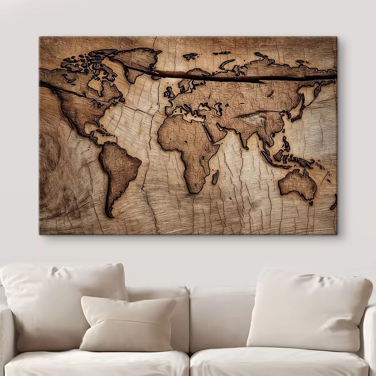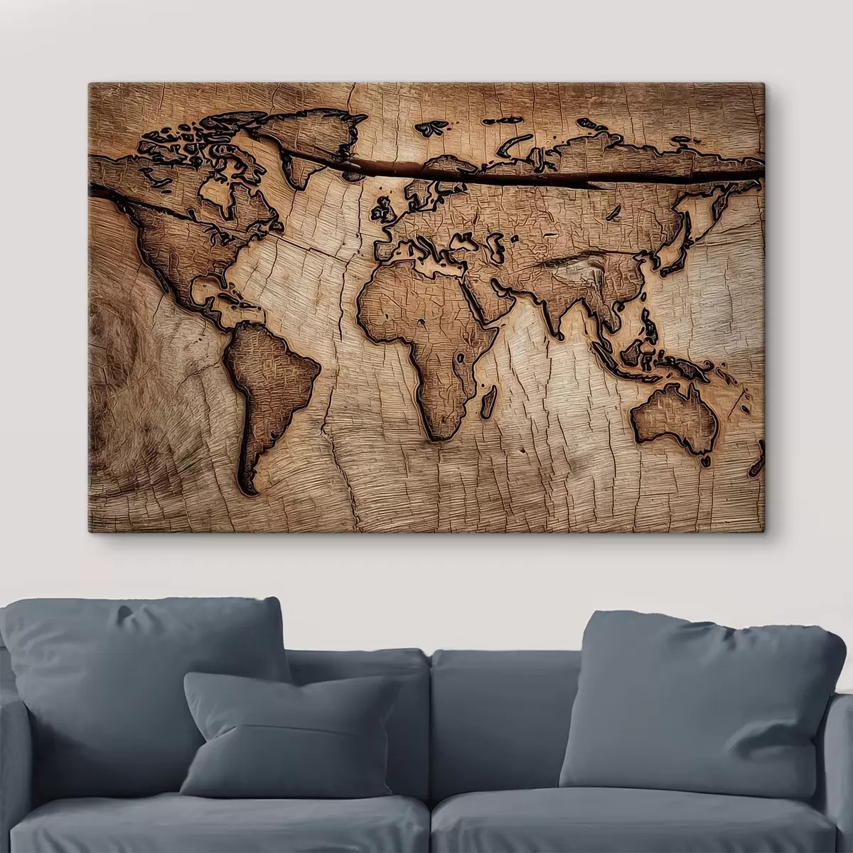 Wandbilder Gravierte Weltkarte aus Holz Art. s45805
