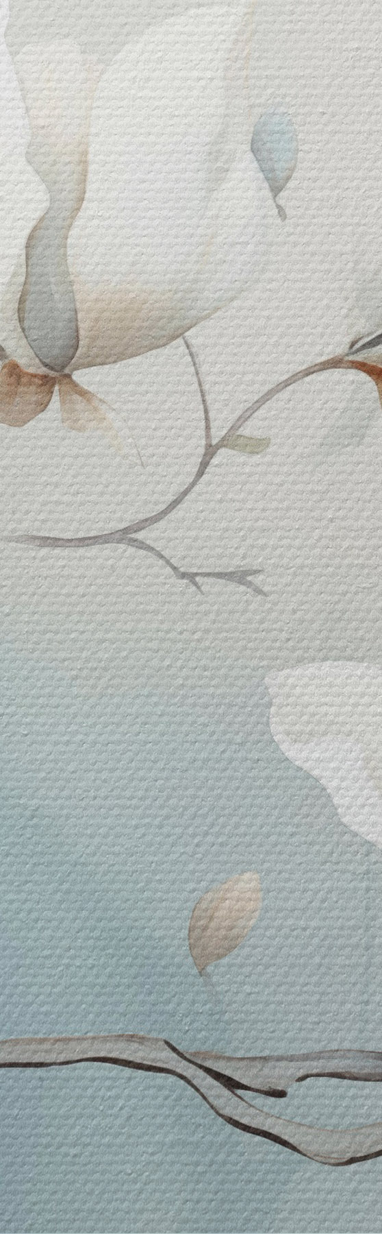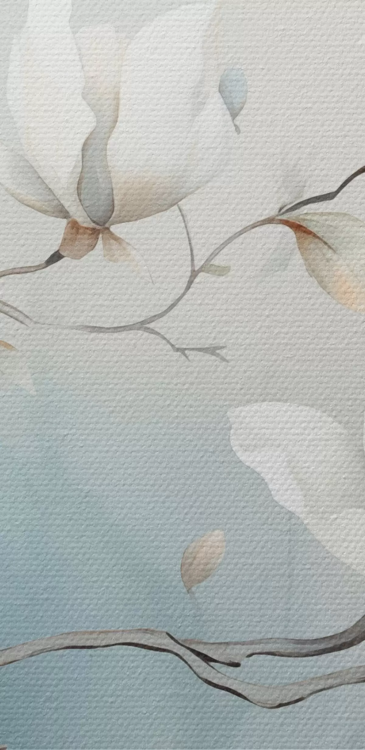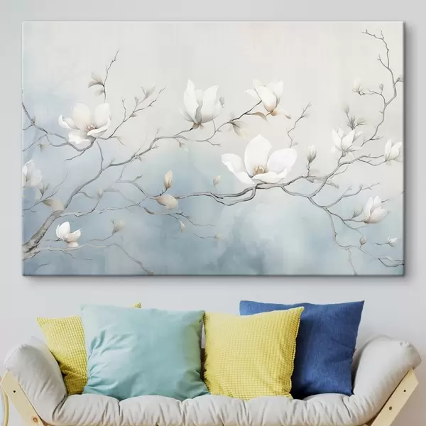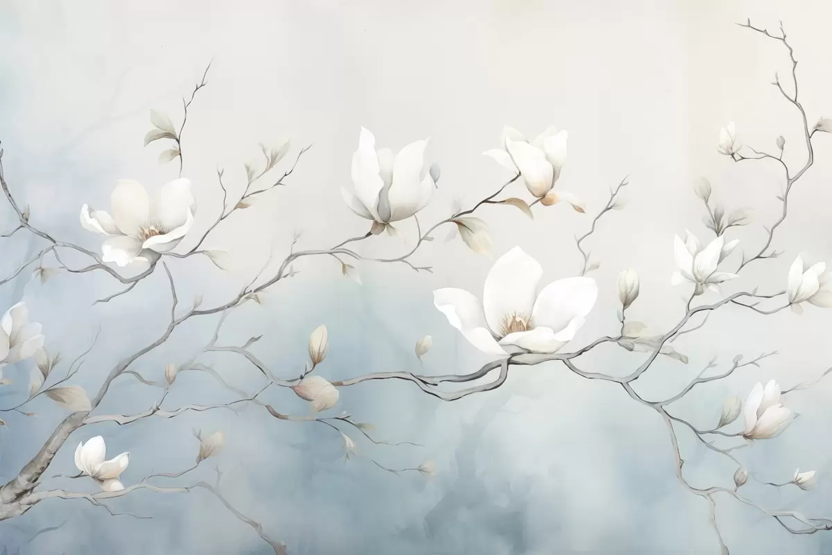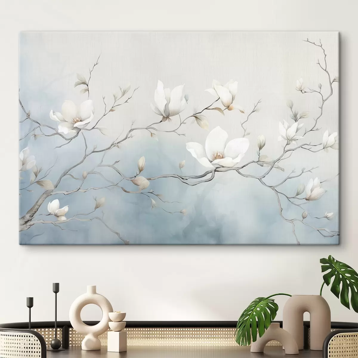 Wandbilder Magnolienzweige mit weißen Blüten vor einem zarten Hintergrund s45806