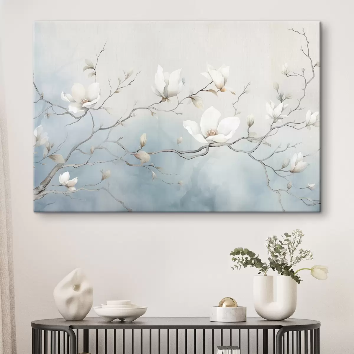 Wandbilder Magnolienzweige mit weißen Blüten vor einem zarten Hintergrund Art. s45806
