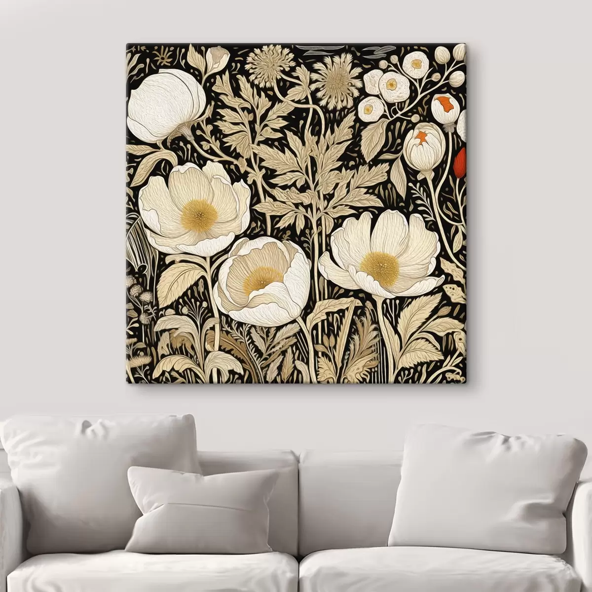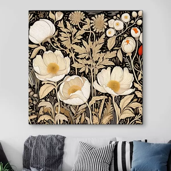 Wandbilder Cremefarbene Blumen und Gräser auf schwarzem Hintergrund Art. s45816