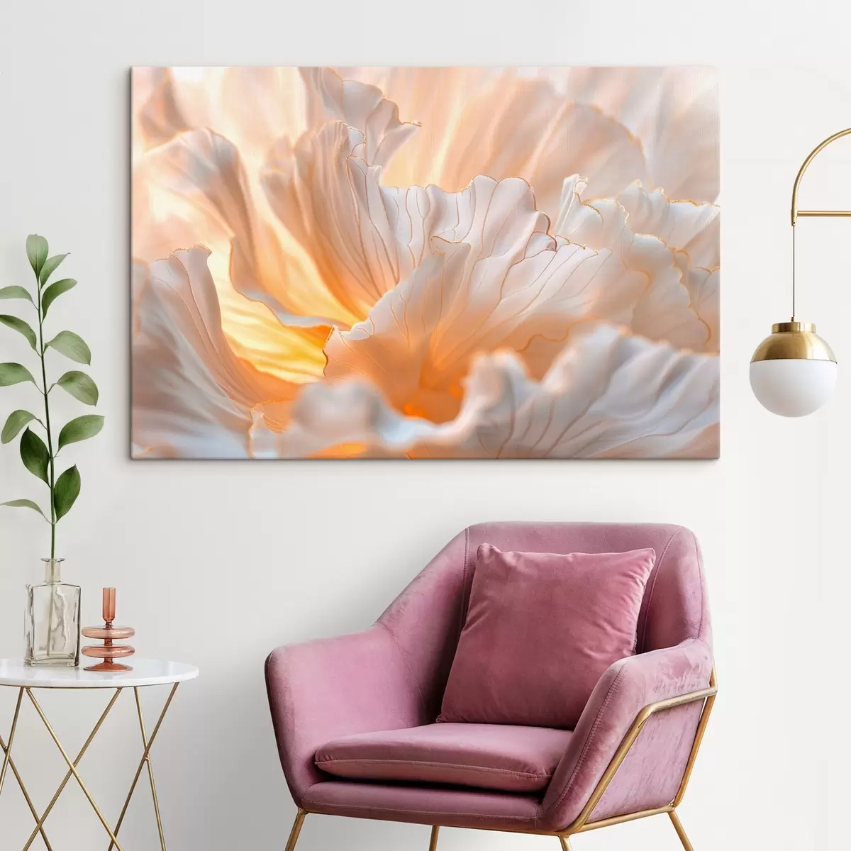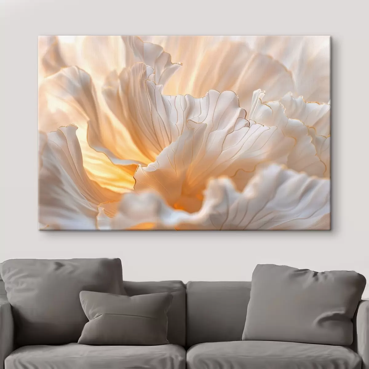 Wandbilder Zarte Blütenblätter in warmen Farbtönen mit gelb-orangefarbenen Rändern s45820