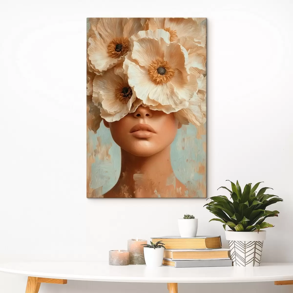 Wandbilder Porträt mit beigen Blumen, die die Augen bedecken Art. s45870