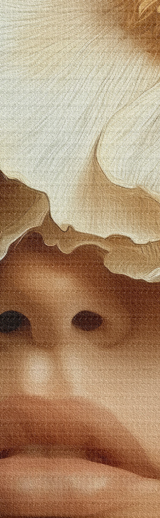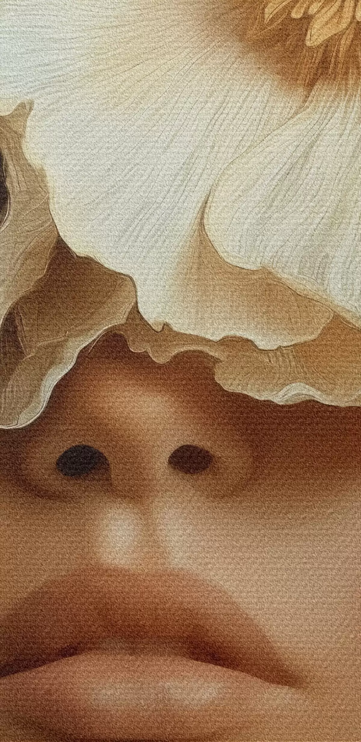 Wandbilder Porträt mit beigen Blumen, die die Augen bedecken s45870