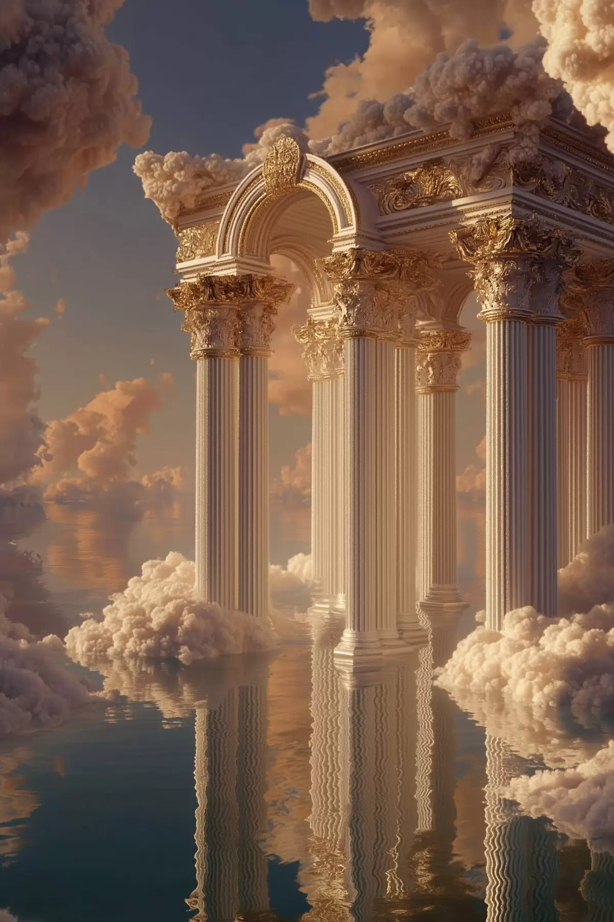 Wandbilder Säulen in den Wolken, Reflexionen auf dem Wasser Art. s45881