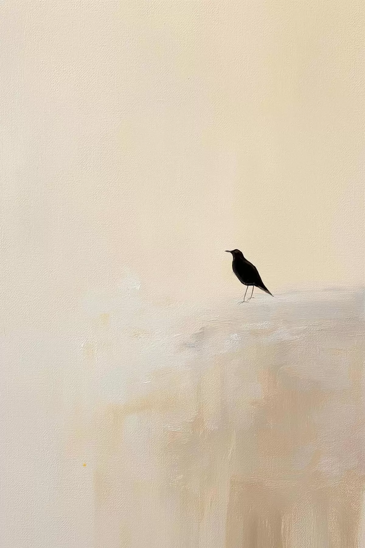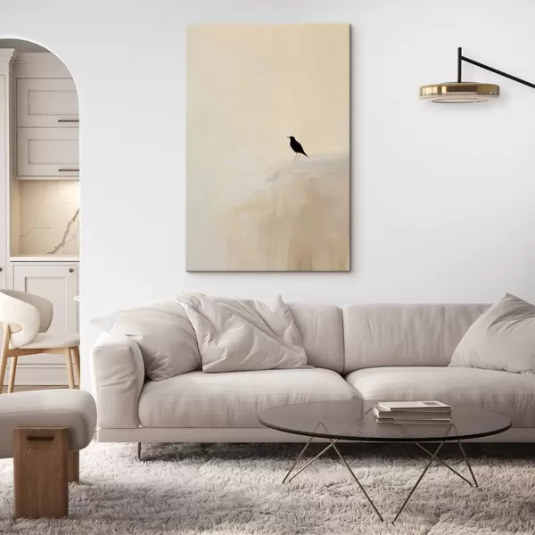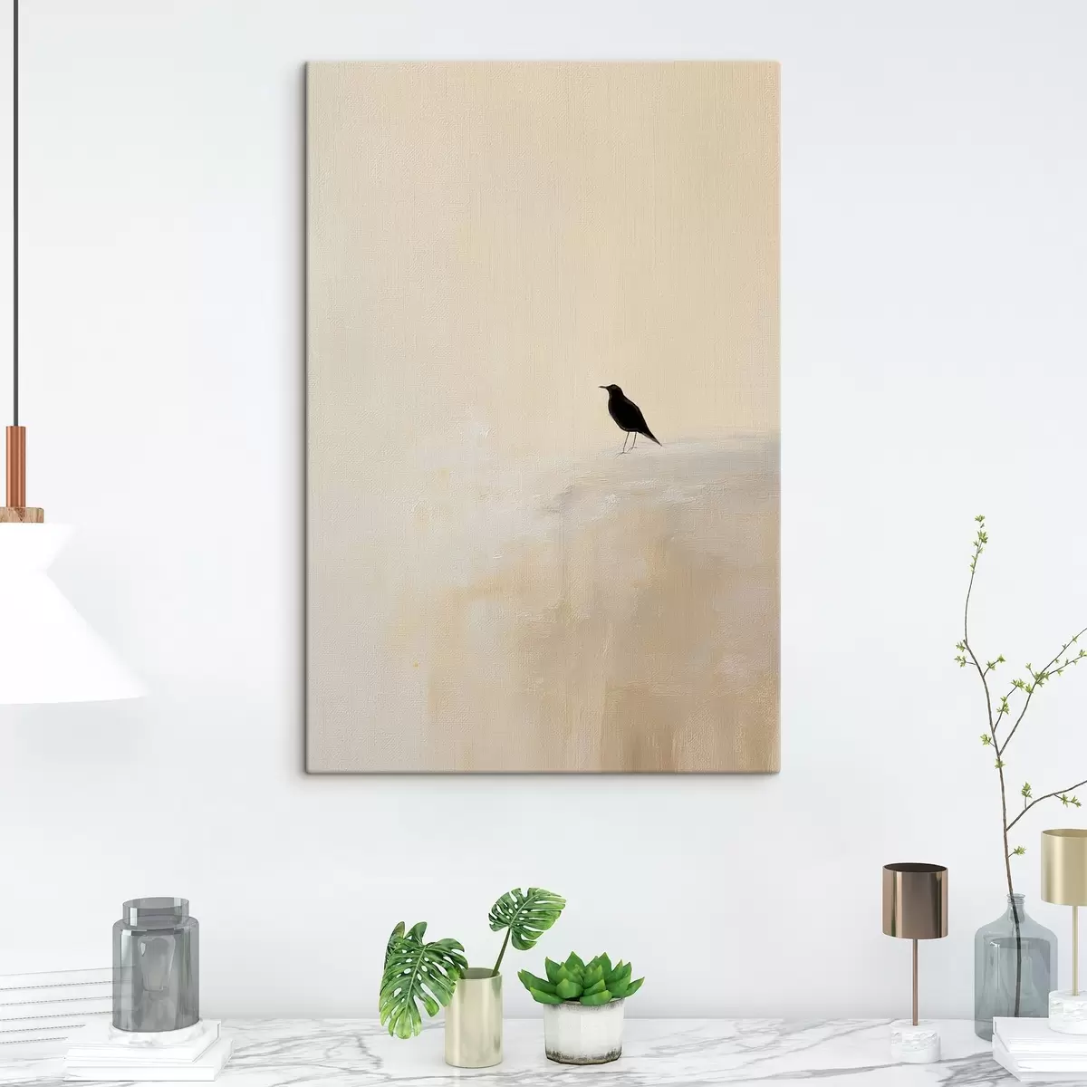 Wandbilder Einsamer Vogel auf warmem beigem Hintergrund s45882