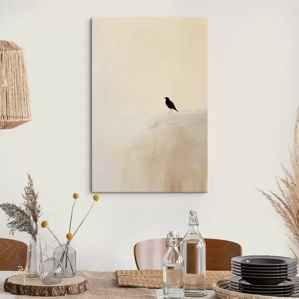 Wandbilder Einsamer Vogel auf warmem beigem Hintergrund Art. s45882