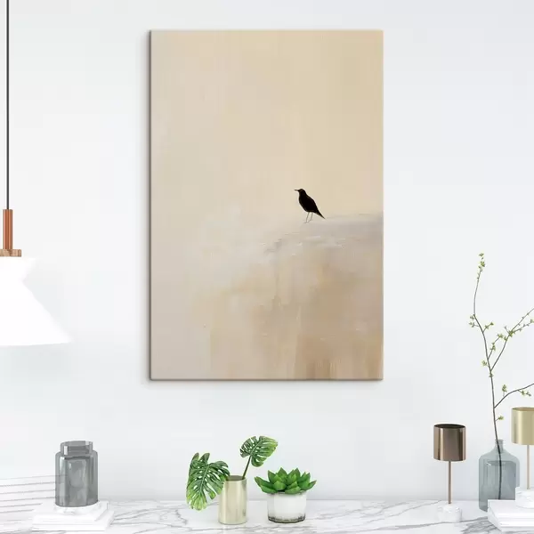 Wandbilder Einsamer Vogel auf warmem beigem Hintergrund Art. s45882