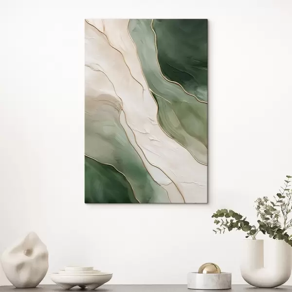 Wandbilder Smaragdgrüne Abstraktion mit feinen gelben Linien Art. s45888
