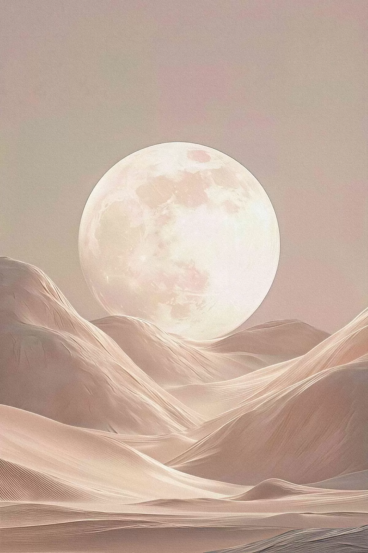Wandbilder Mond über Sanddünen in rosa Farbtönen s45892