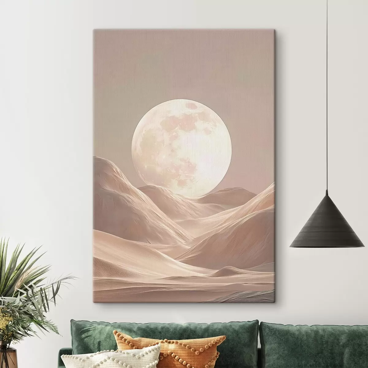 Wandbilder Mond über Sanddünen in rosa Farbtönen Art. s45892