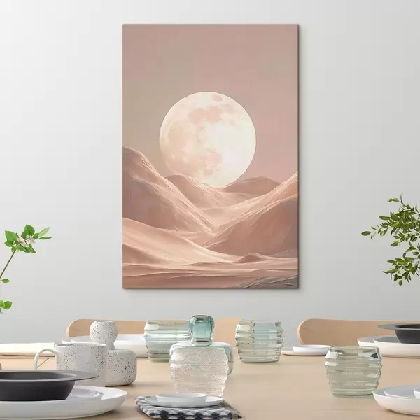 Wandbilder Mond über Sanddünen in rosa Farbtönen Art. s45892