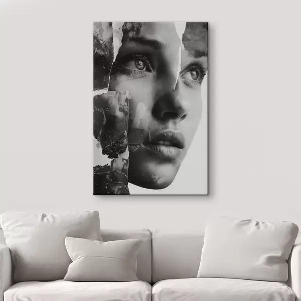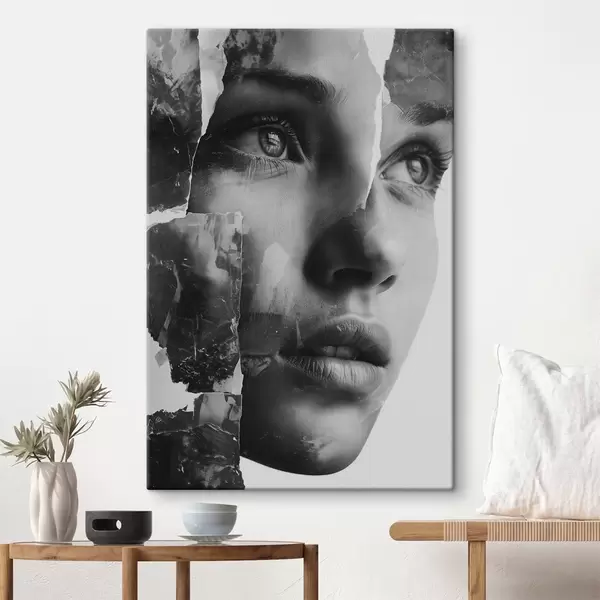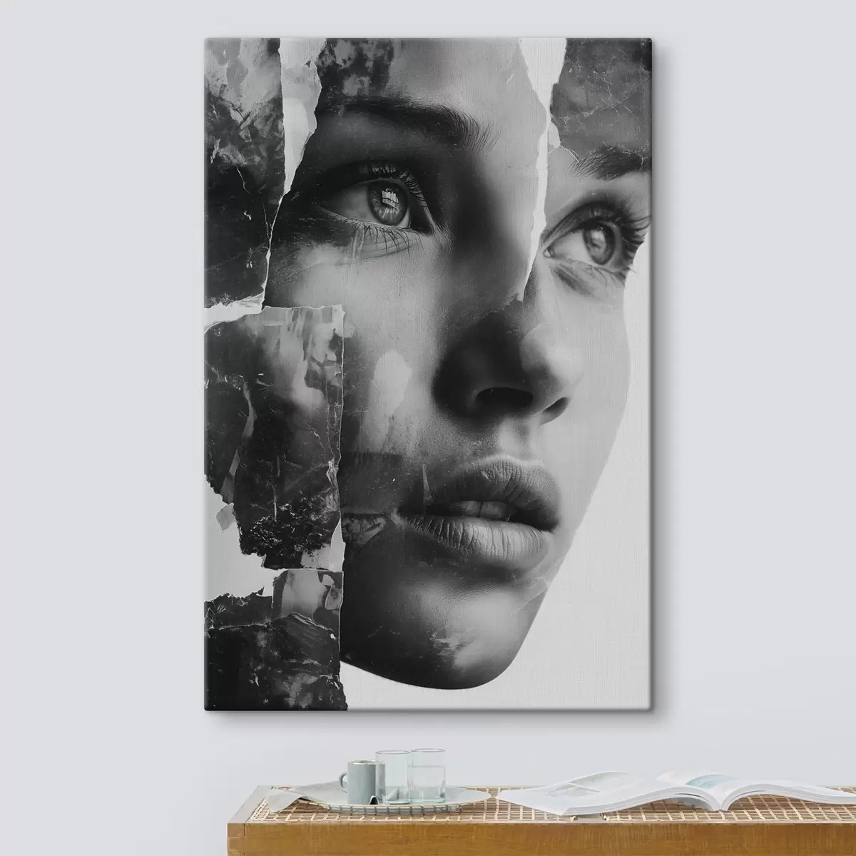 Wandbilder Schwarz-Weiß-Collage-Porträt mit zerrissenen strukturierten Schichten Art. s45898