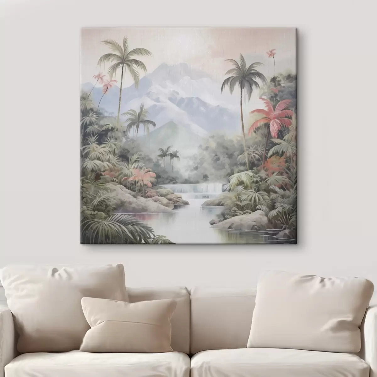 Wandbilder Fluss im tropischen Wald vor Bergen Art. s45913