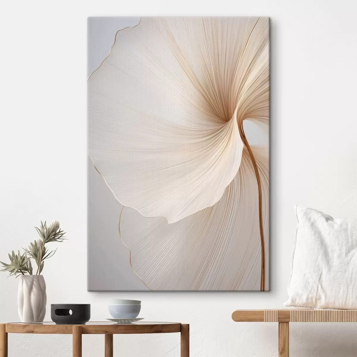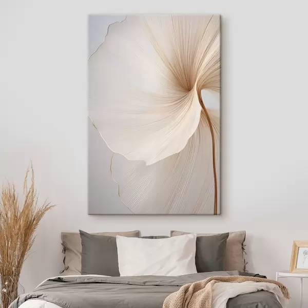 Wandbilder Abstrakte Blumen mit dünnen, zarten Blütenblättern in Weiß- und Beigetönen Art. s45922