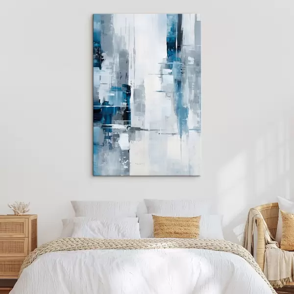 Wandbilder Abstrakte Malerei-Imitation mit blauen, grauen und weißen Farben, vertikalen Linien und geometrischen Formen Art. s45926
