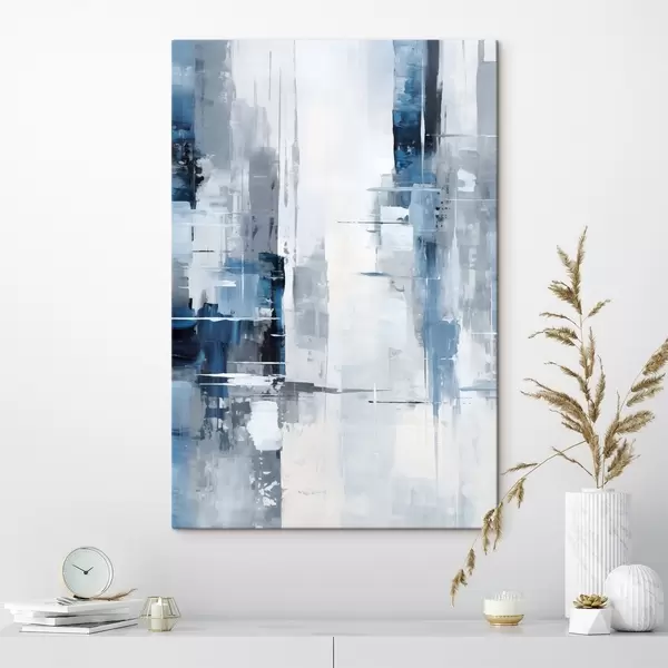 Wandbilder Abstrakte Malerei-Imitation mit blauen, grauen und weißen Farben, vertikalen Linien und geometrischen Formen Art. s45926