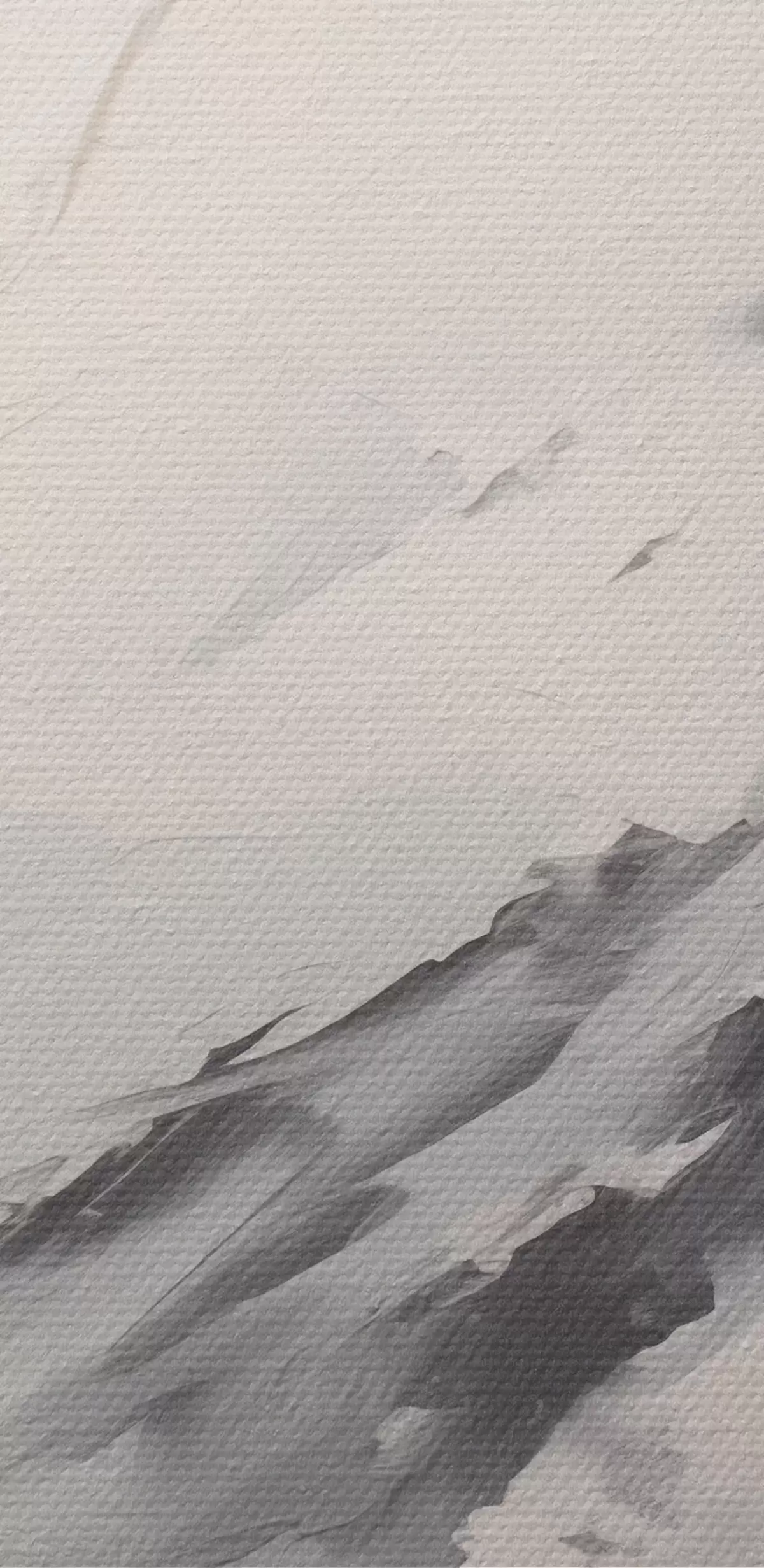 Wandbilder Verschneite Berggipfel mit grauen Schatten, grauer Himmel, Pinselstriche, strukturiert, minimalistisch s45932
