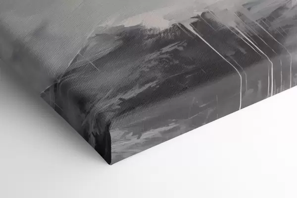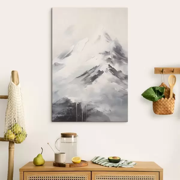 Wandbilder Verschneite Berggipfel mit grauen Schatten, grauer Himmel, Pinselstriche, strukturiert, minimalistisch s45932