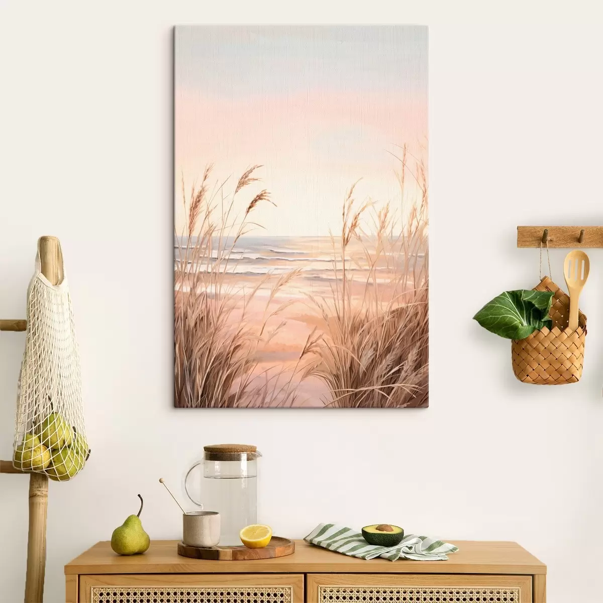 Wandbilder Pampasgras mit pastelloranger Farbpalette, hellrosa Himmel, eine ruhige Landschaft Art. s45935