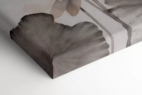 Wandbilder Weiße Lotusblumen mit dunkler Blattstruktur, heller Hintergrund, minimalistisches Design Art. s45936