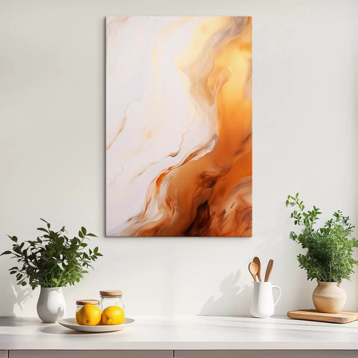 Wandbilder Abstrakte Malerei-Imitation in Weiß und Orange, Fluid Art mit wellenförmigen Linien, moderne Kunst Art. s45939