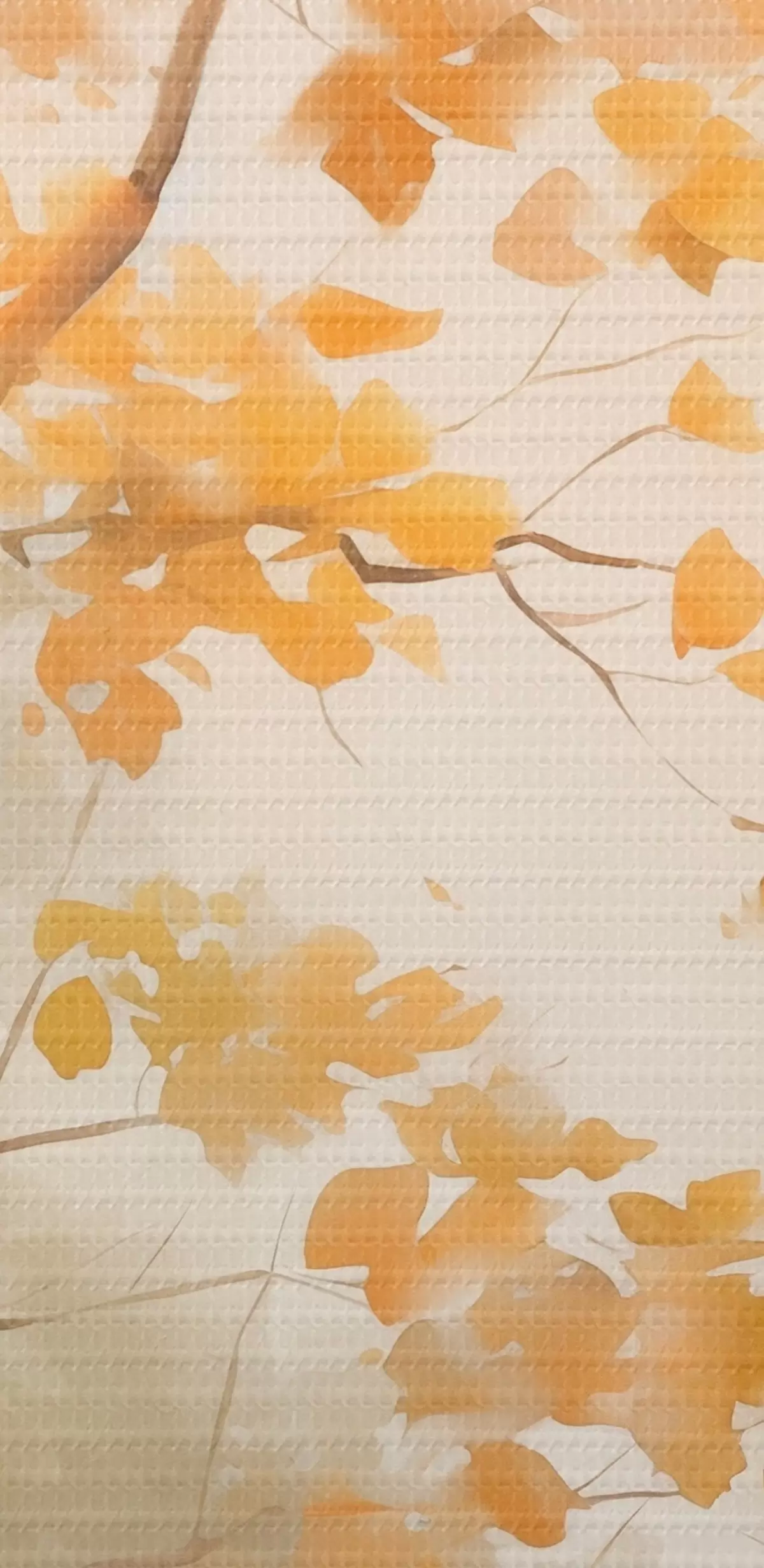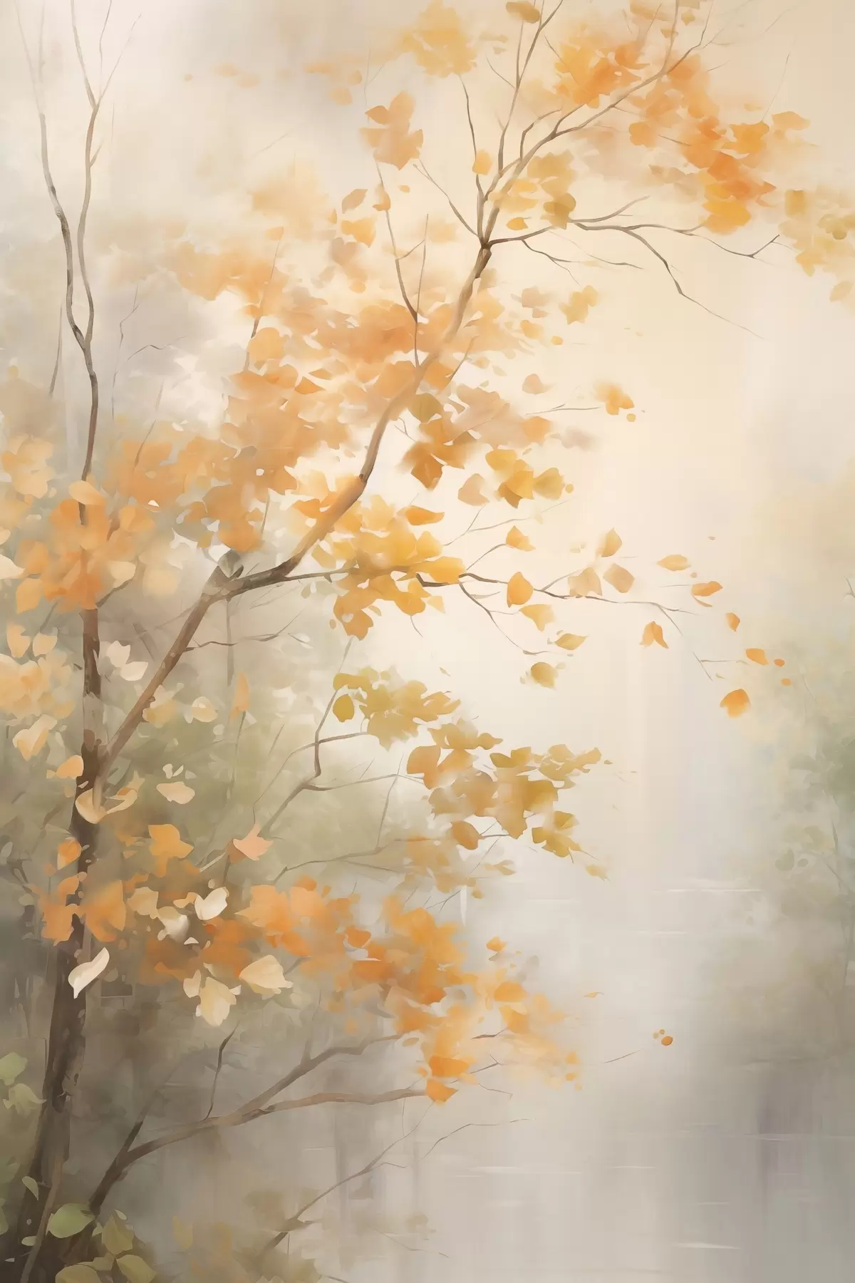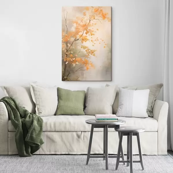 Wandbilder Herbstliche Äste mit orangefarbenen Blättern in einem Wald mit sanftem Licht s45940