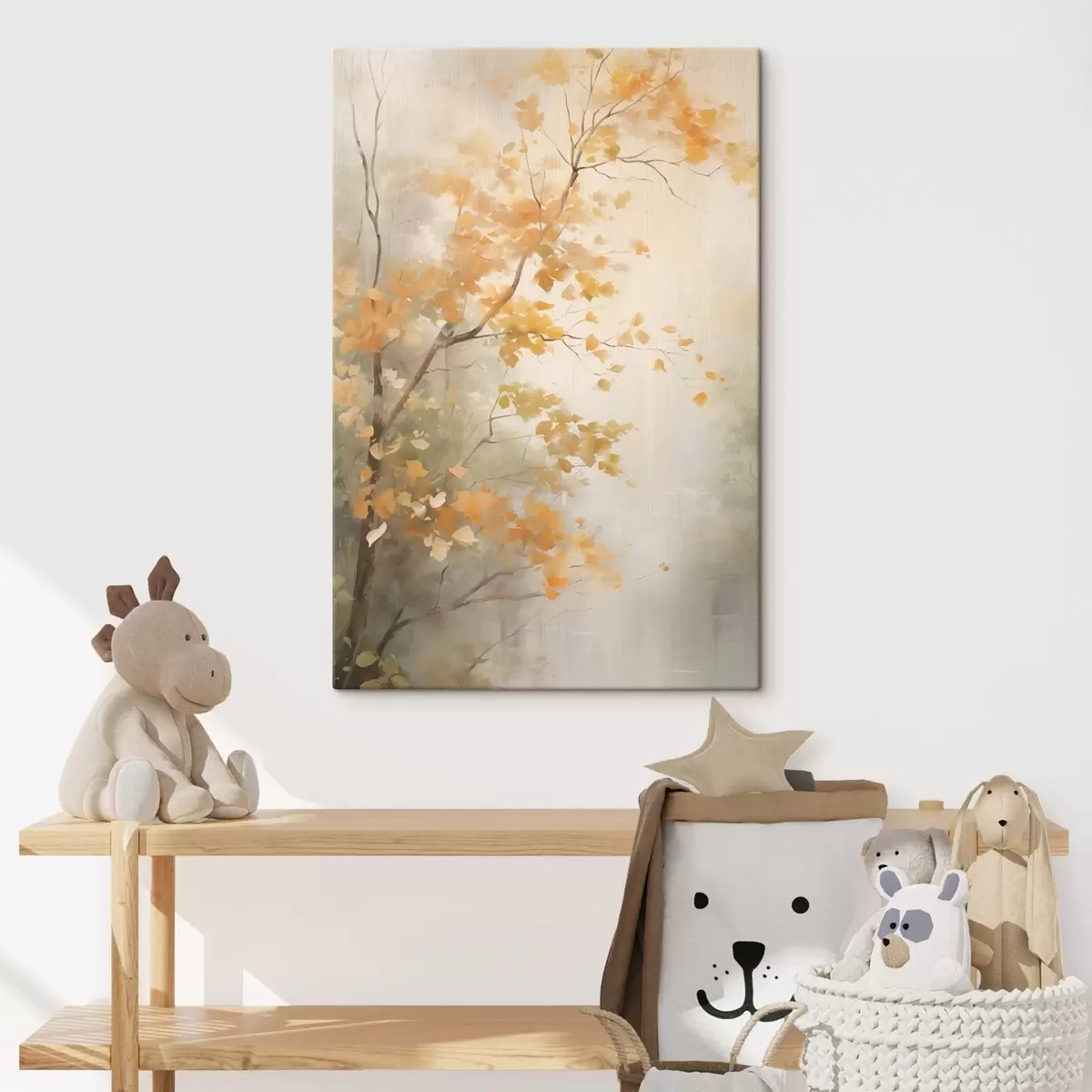 Wandbilder Herbstliche Äste mit orangefarbenen Blättern in einem Wald mit sanftem Licht Art. s45940