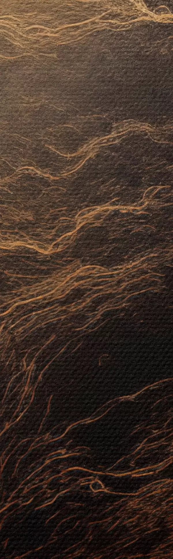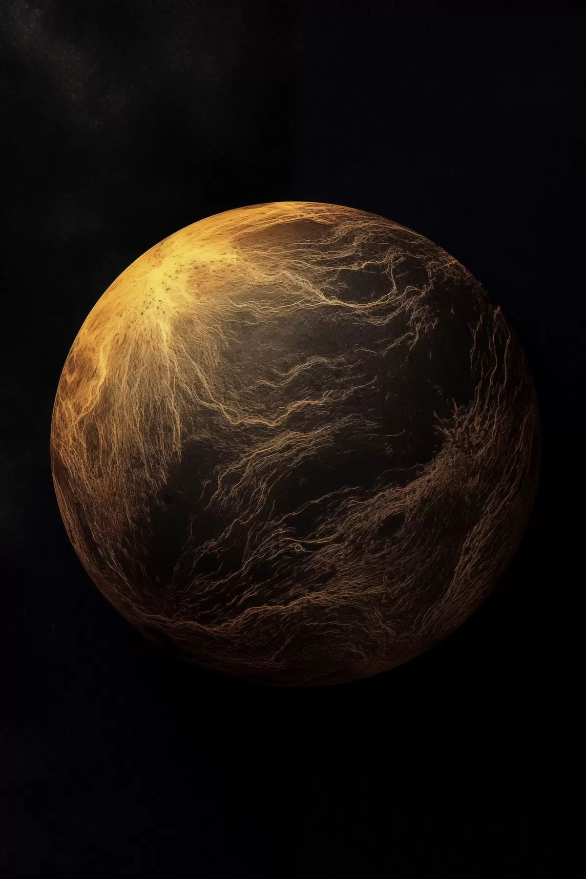 Wandbilder Abstrakter Planet mit orangefarbenen Adern vor schwarzem Weltraumhintergrund, moderne minimalistische Kunst s45943
