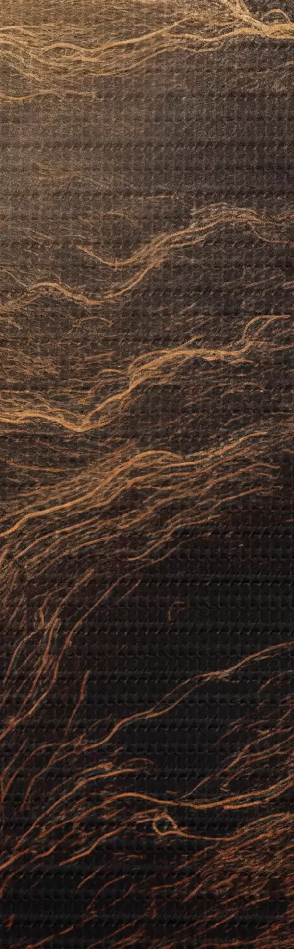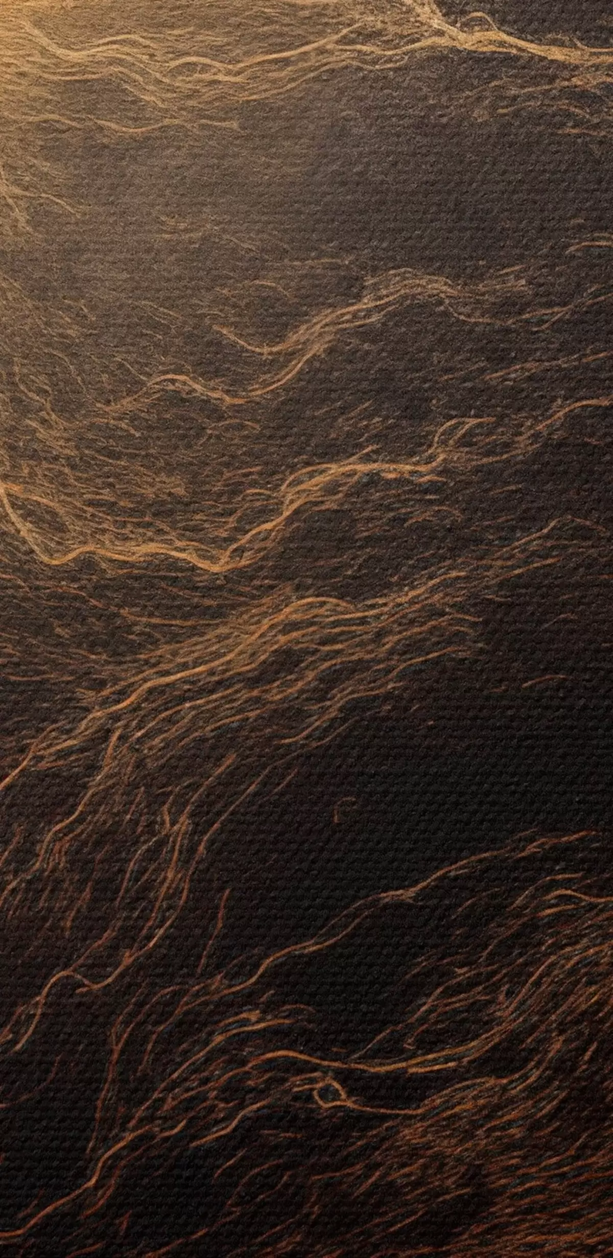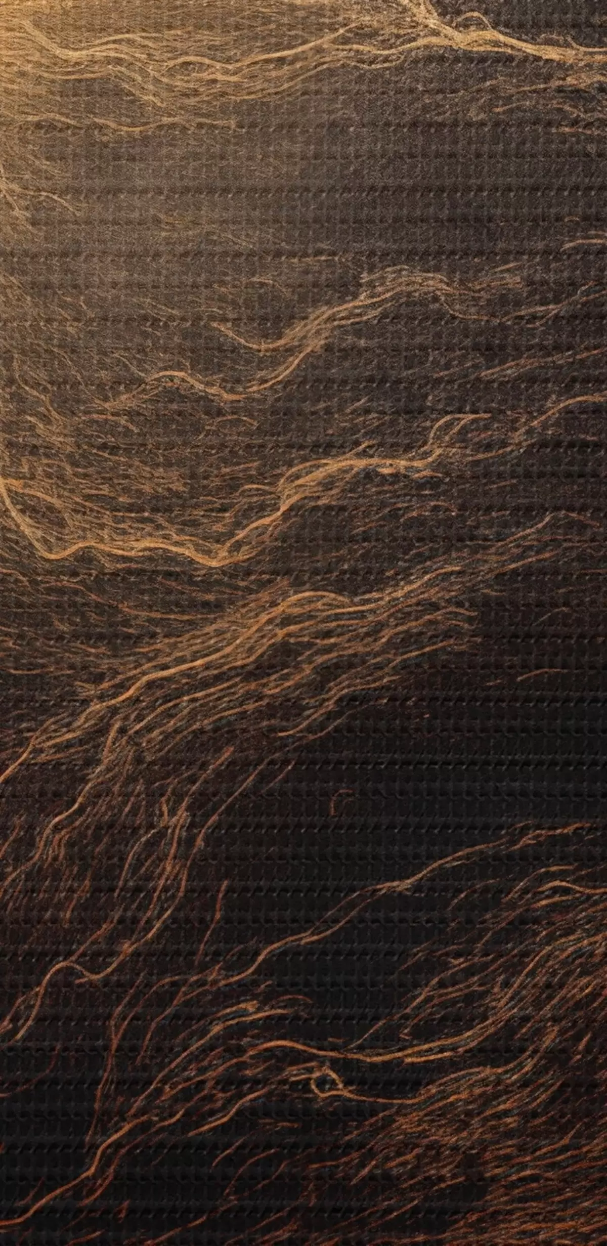 Wandbilder Abstrakter Planet mit orangefarbenen Adern vor schwarzem Weltraumhintergrund, moderne minimalistische Kunst Art. s45943