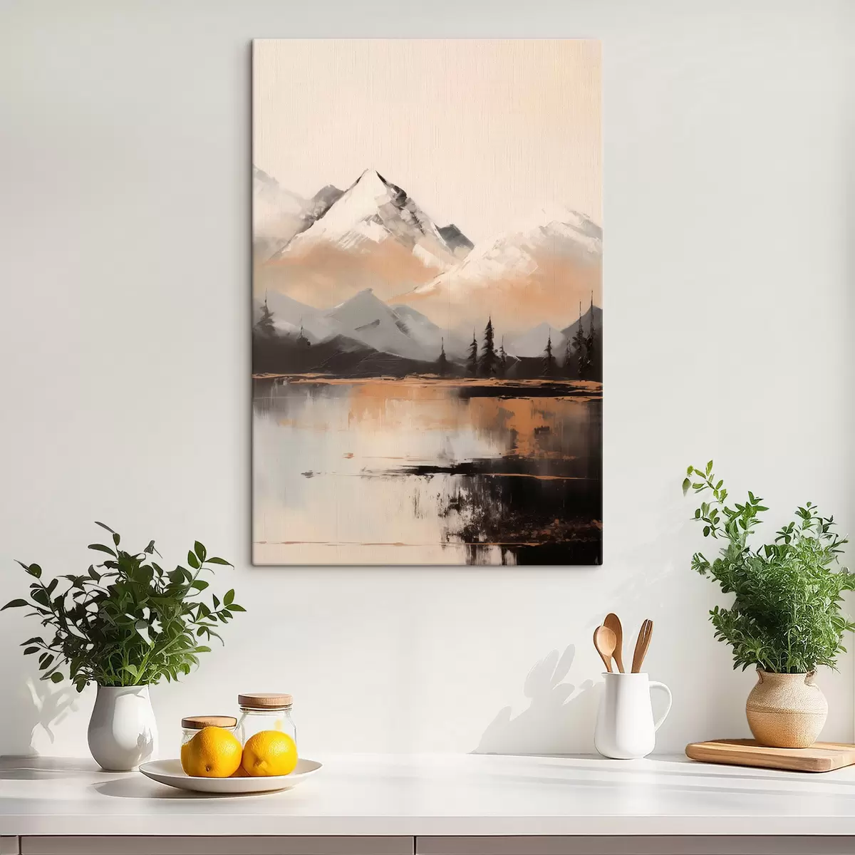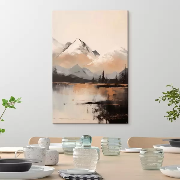 Wandbilder Verschneite Berge mit Baumstruktur vor einem See Art. s45951