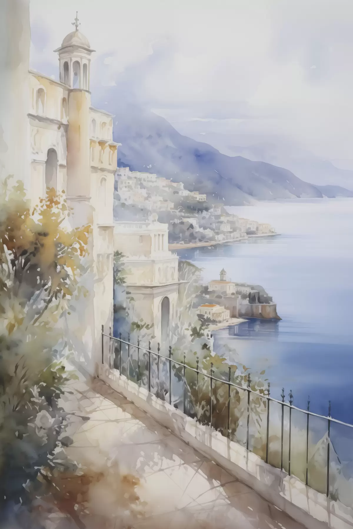 Wandbilder Bucht in der Nähe der Stadt, Aquarellimitation Art. s45979