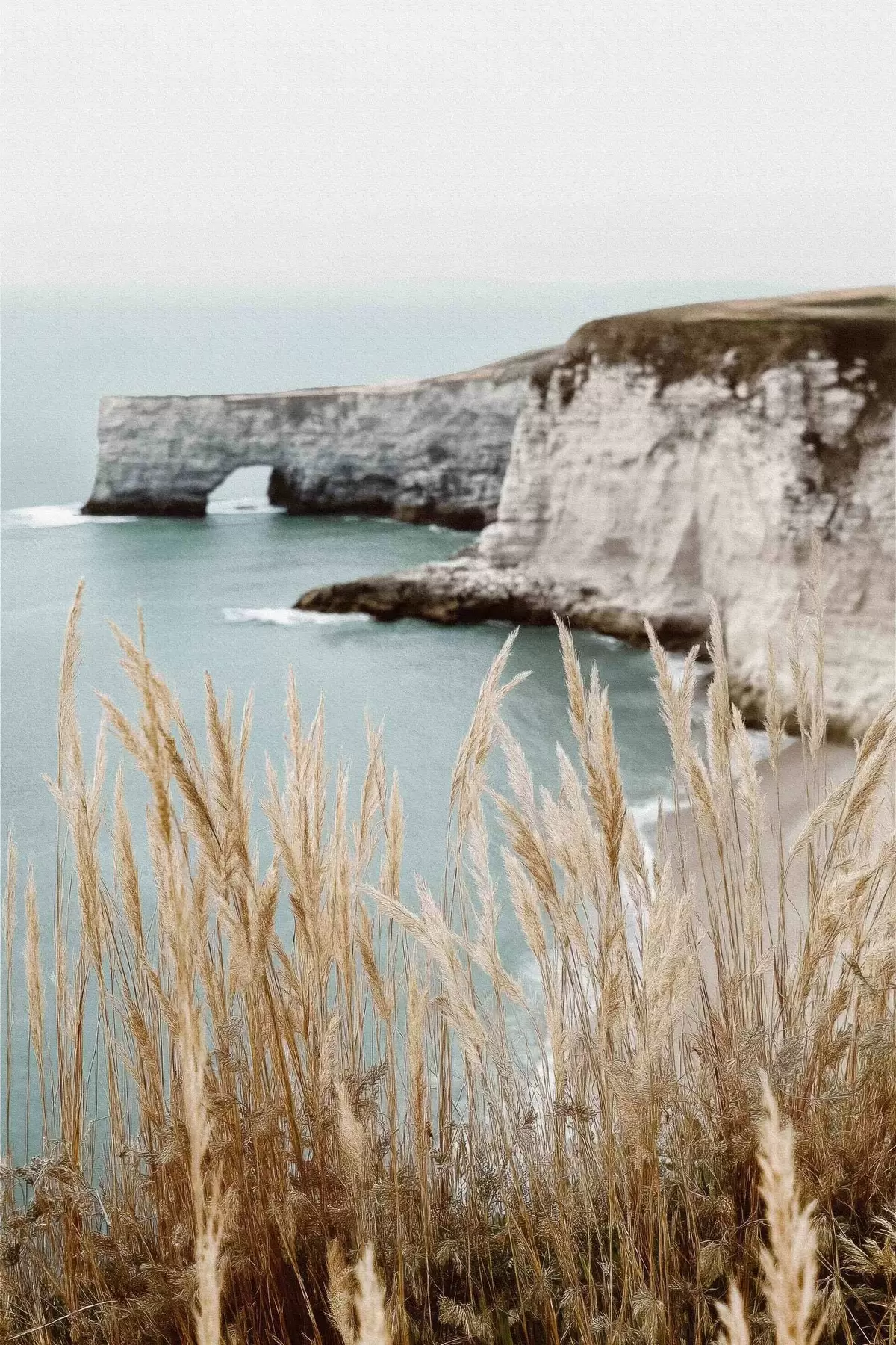 Wandbilder Küstenklippen mit Schilf im Vordergrund s46141