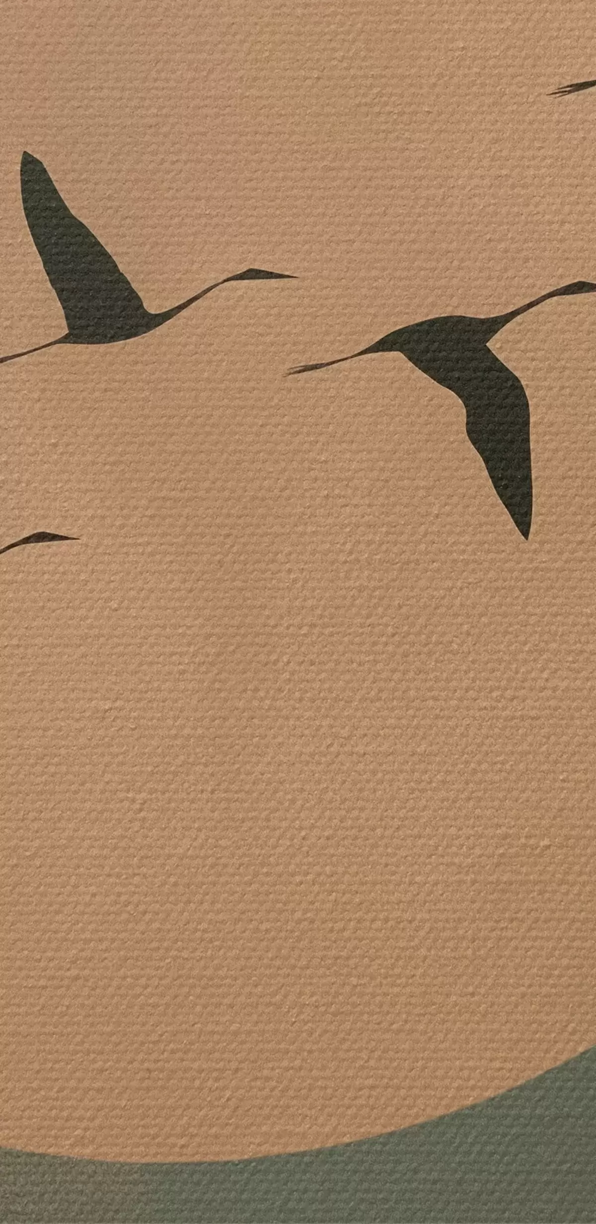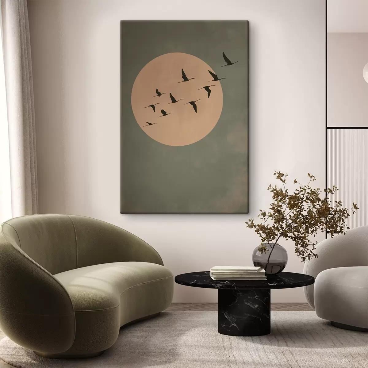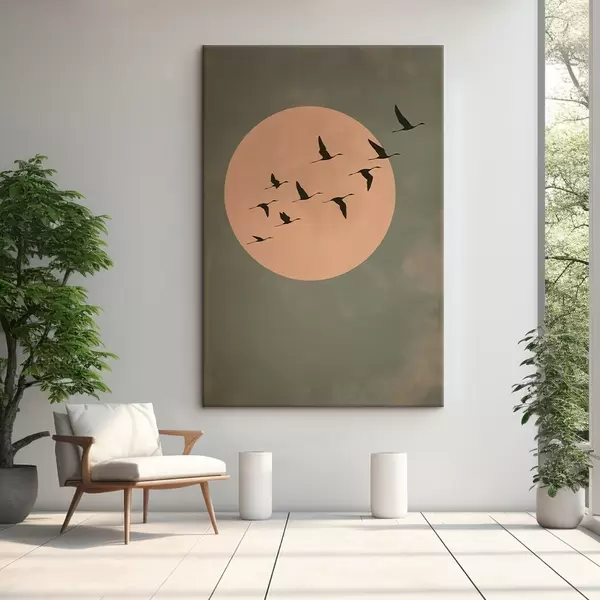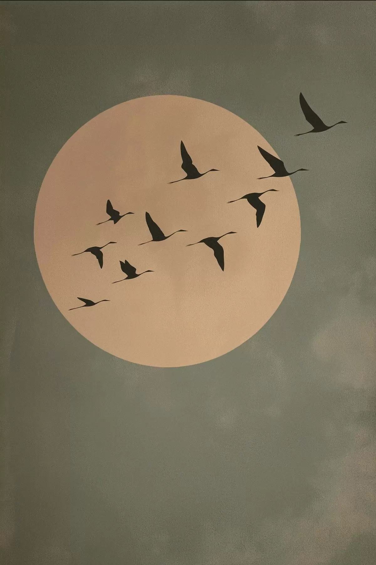Wandbilder Ein Vogelschwarm fliegt vor einem großen, warmen Mond Art. s46162