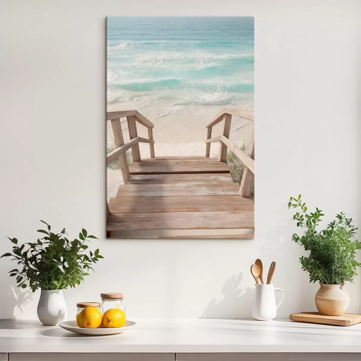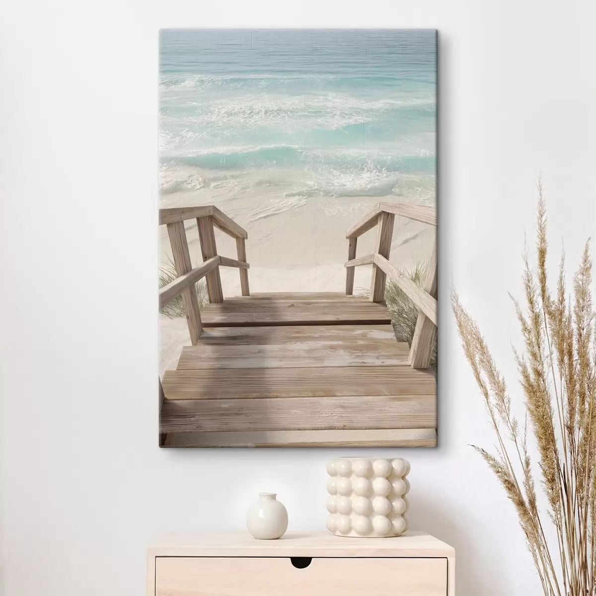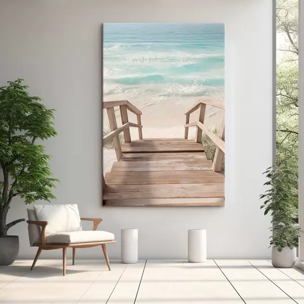 Wandbilder Holztreppe, die zu einem türkisfarbenen Strand führt Art. s46163
