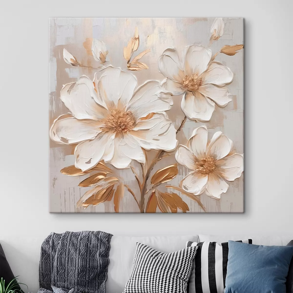 Wandbilder Strukturierte Blumen auf hellem Hintergrund mit warmen Farbtönen Art. s46166