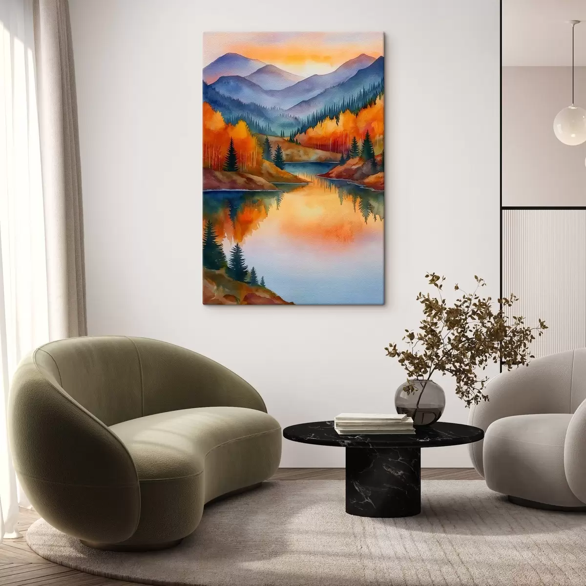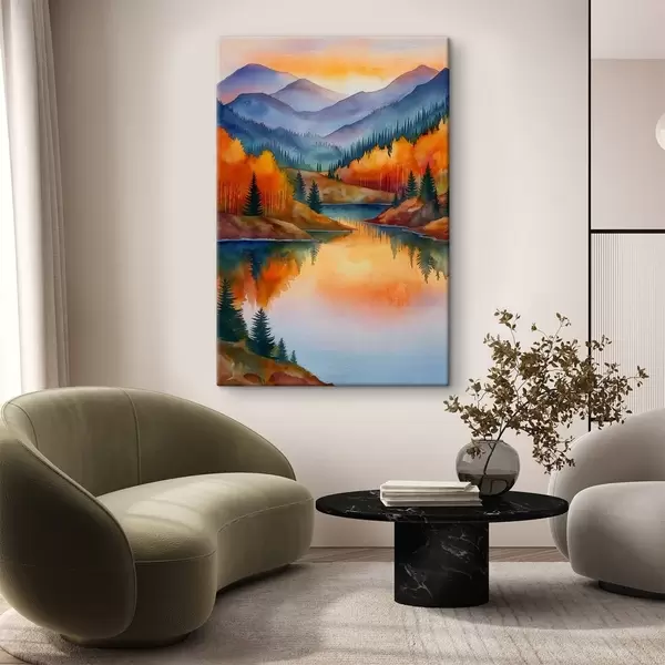 Wandbilder Herbstlandschaft mit Bergen, die sich in einem ruhigen See spiegeln Art. s46174
