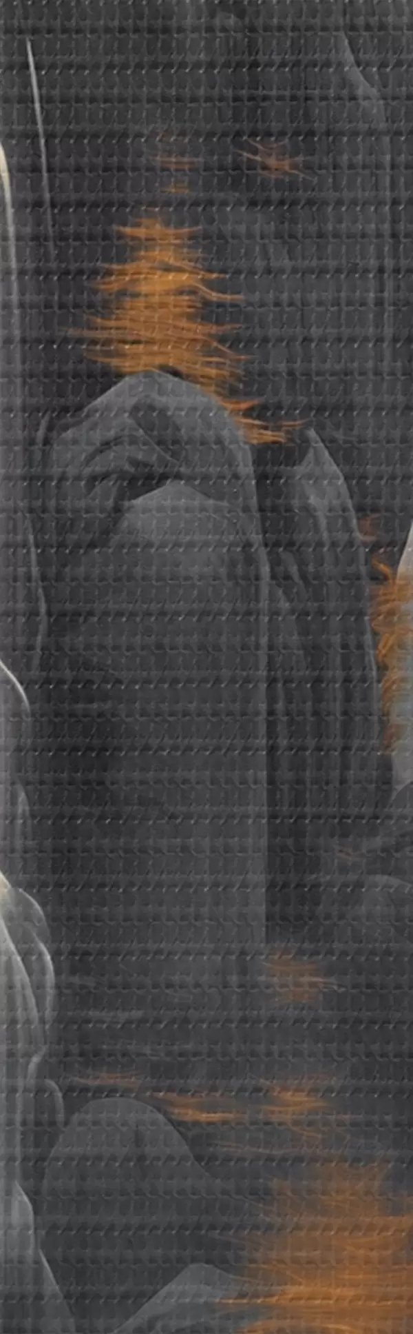 Um die Leinwand auf Keilrahmen zu spannen, ohne das Bild zu beschädigen, verwenden wir ein gespiegeltes Bild.