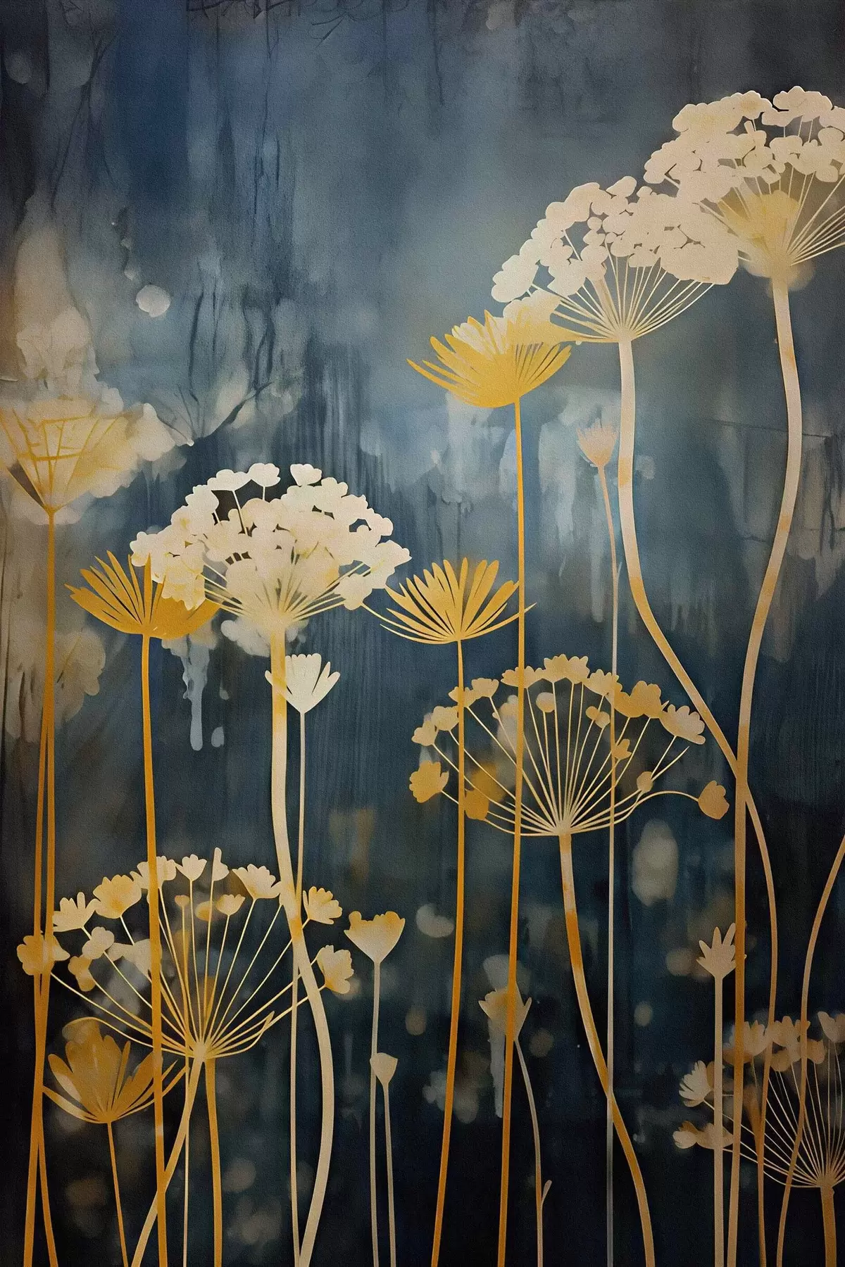 Wandbilder Stilisierte Blumen mit dünnen Stielen auf dunklem Hintergrund s46188