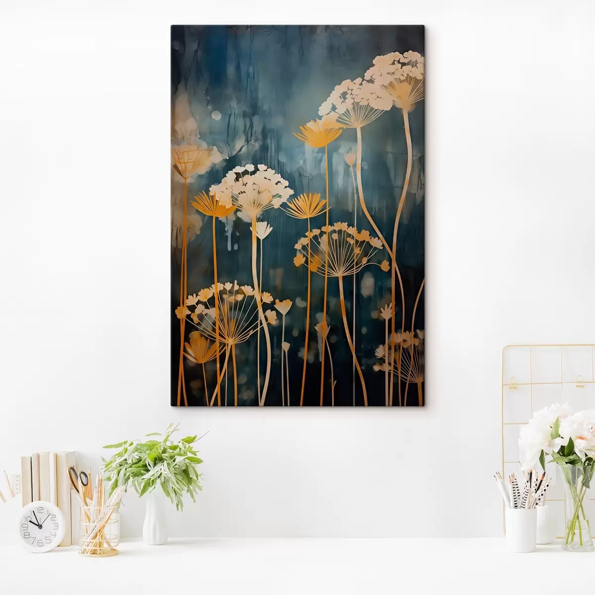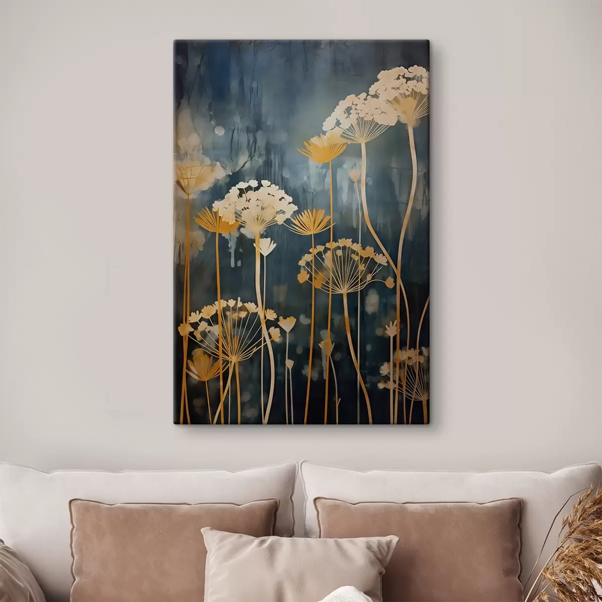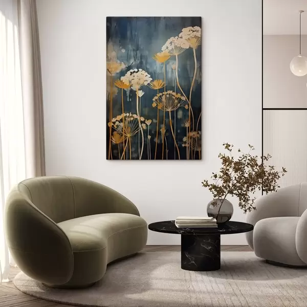 Wandbilder Stilisierte Blumen mit dünnen Stielen auf dunklem Hintergrund Art. s46188