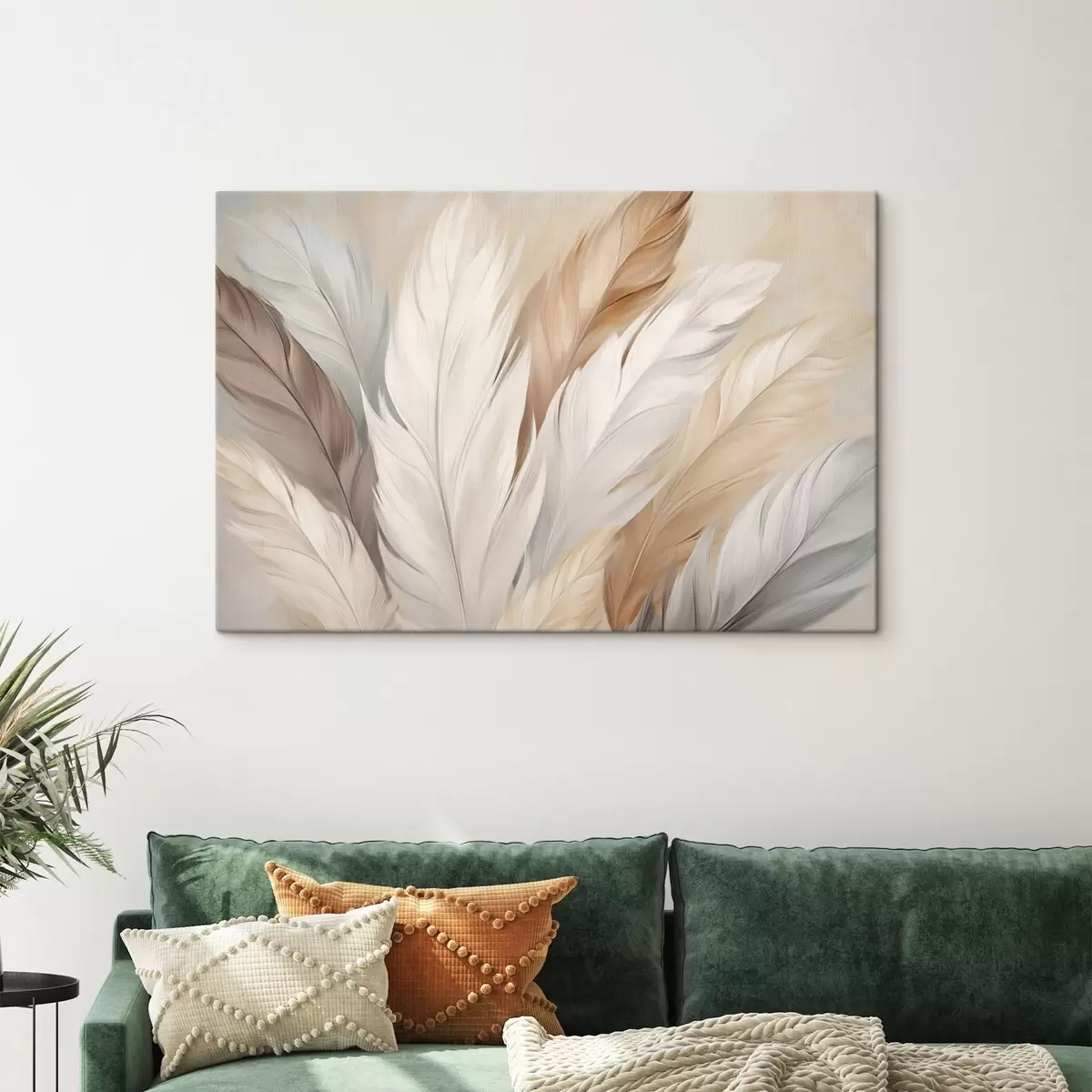 Wandbilder Weiche Federn in Beige- und Grautönen Art. s46190