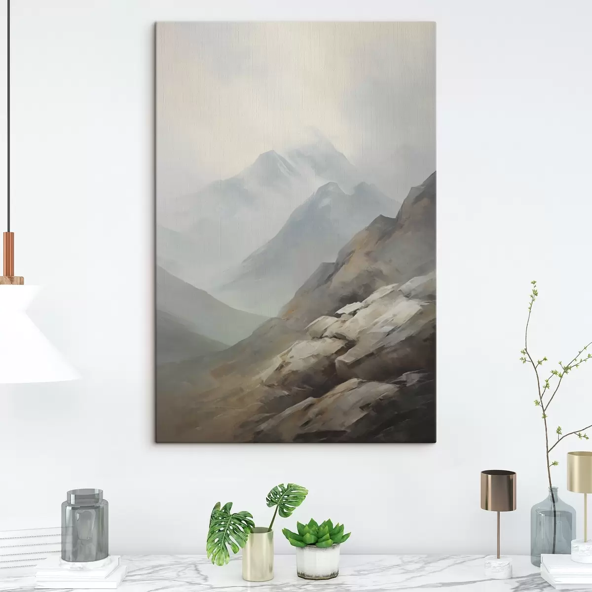 Sie können das Bild an Schrauben aufhängen. Dazu legen wir unseren Bildern Halterungen bei, mit denen Sie das Bild bequem aufhängen können.