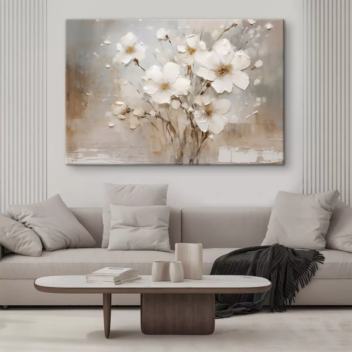 Drei Materialtypen stehen zur Verfügung: Economic Canvas - ein dichtes und haltbares Material für den Digitaldruck, identisch mit Malerleinwand, wasserfeste Oberfläche, realistische Wiedergabe von Details, mittelkörniges Material. Premium Canvas - die Textur ähnelt der einer Malerleinwand (verwobene kleine Fäden). Weiche, detaillierte Wiedergabe des Bildes auf einer matten Oberfläche. Eco-Premium - hochwertiges Gewebe aus 100% Baumwolle. Dank der natürlichen Baumwollfasern ist das Material langlebig und verschleißfest. Hervorragende Farbwiedergabe und Detailtreue.