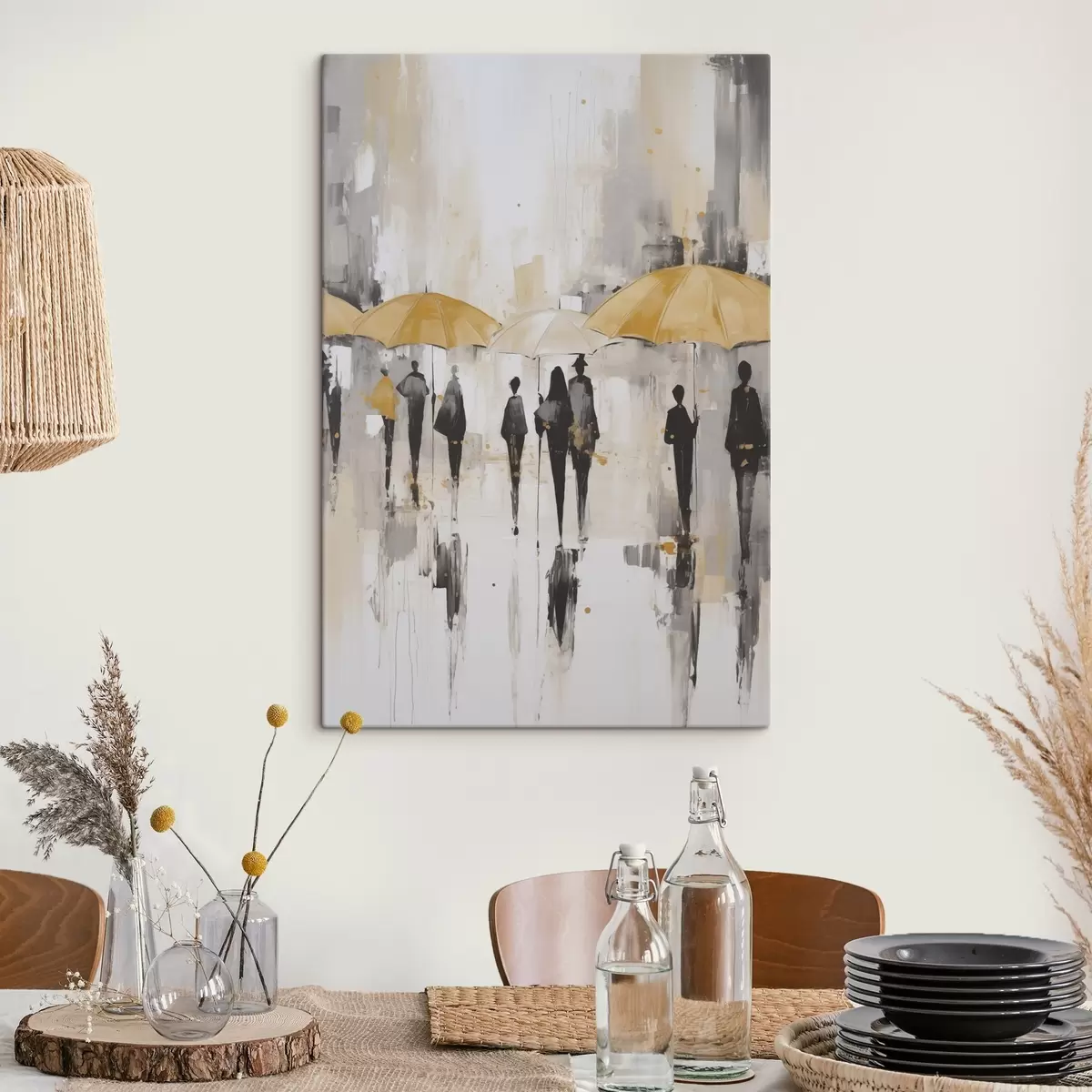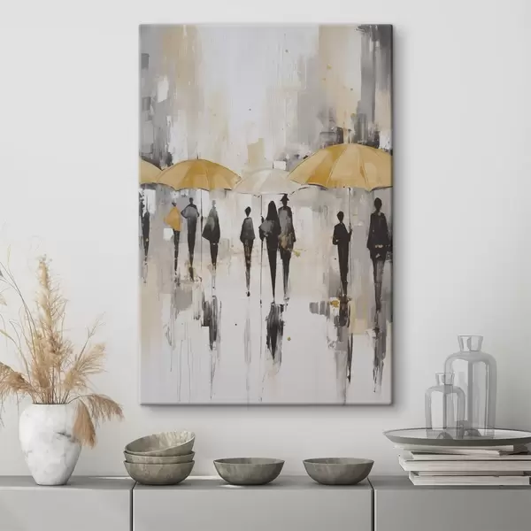 Wandbilder Abstraktion von Menschen mit Regenschirmen s46304