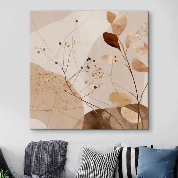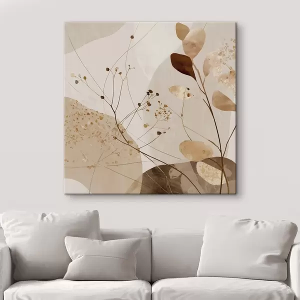 Wandbilder Abstrakte Formen und Pflanzenmotive in Beigetönen Art. s46309