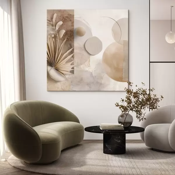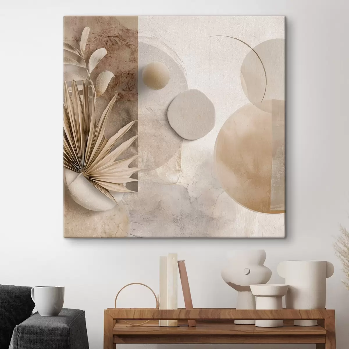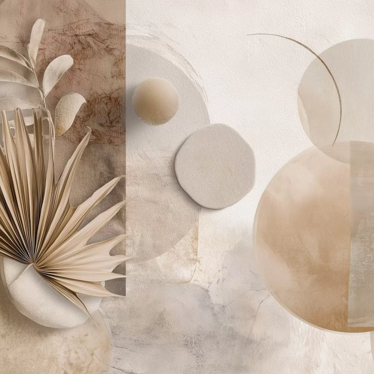 Wandbilder Getrocknete Palmblätter und 3D-Kreise in Beigetönen Art. s46310