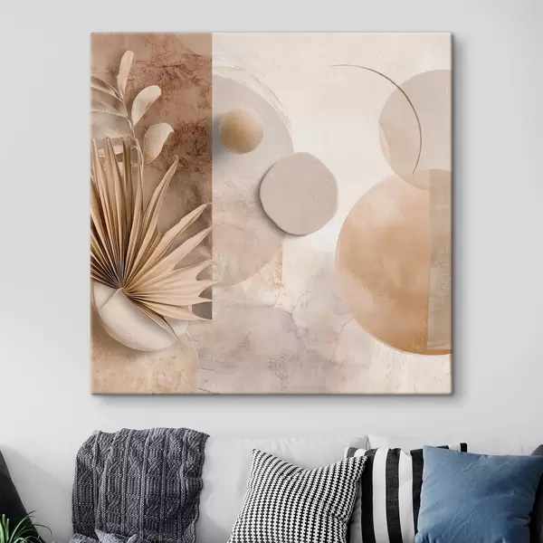Wandbilder Getrocknete Palmblätter und 3D-Kreise in Beigetönen Art. s46310