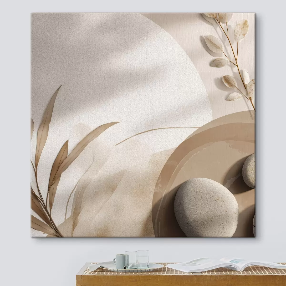 Wandbilder Steine und Schatten an der Wand in Beigetönen Art. s46311