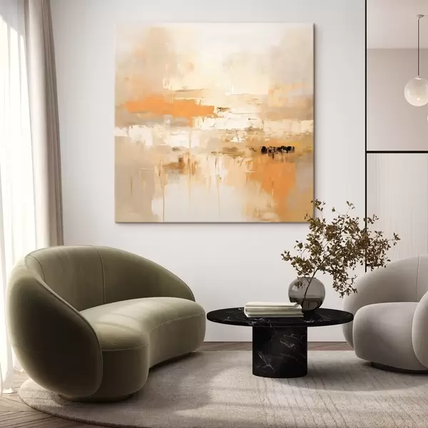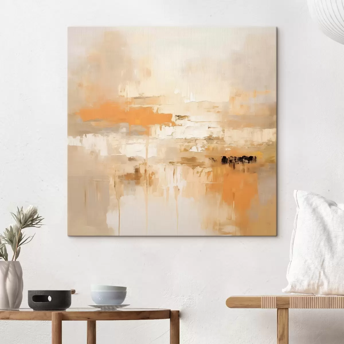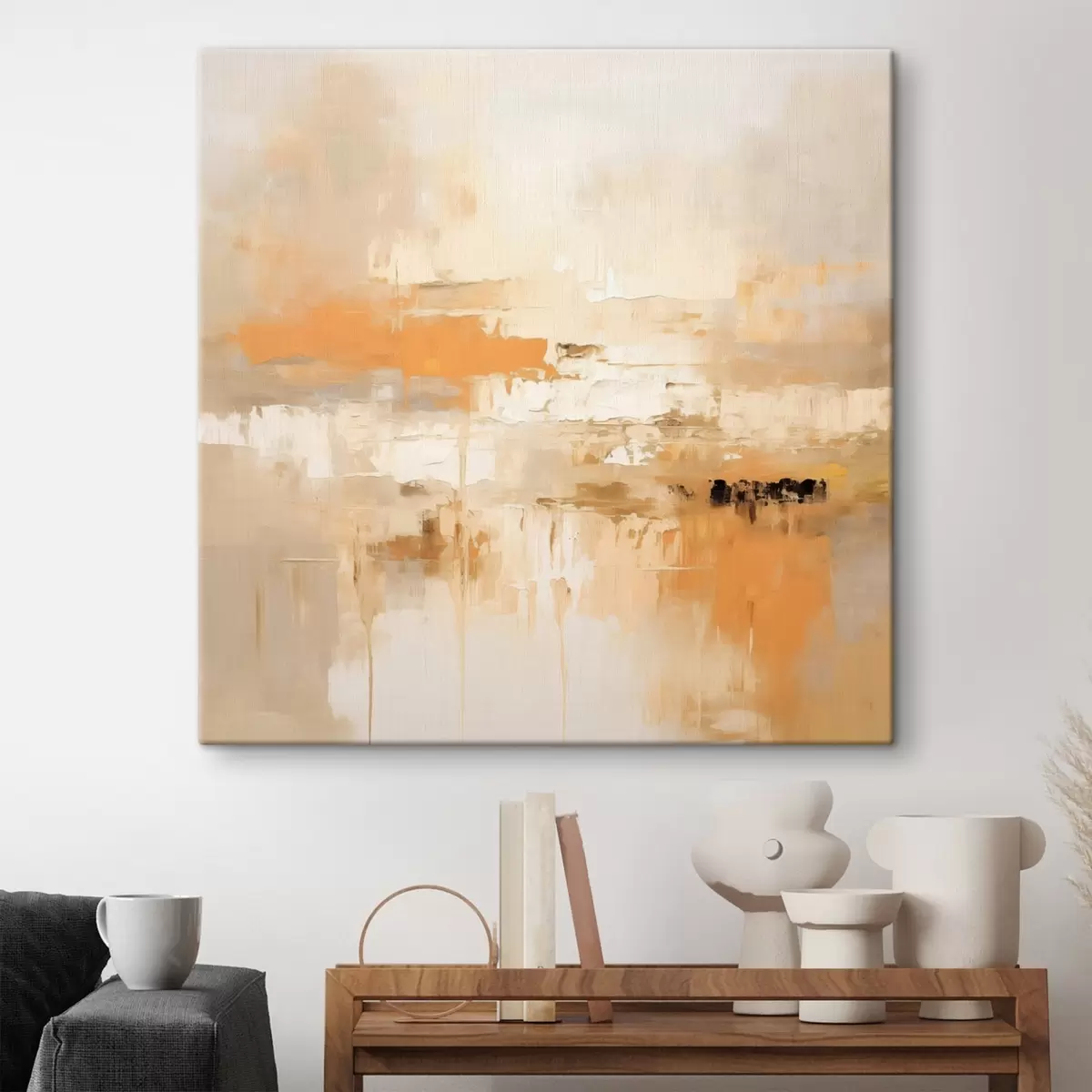 Wandbilder Landschaftsabstraktion im Ölstil mit Orange- und Beigetönen s46314