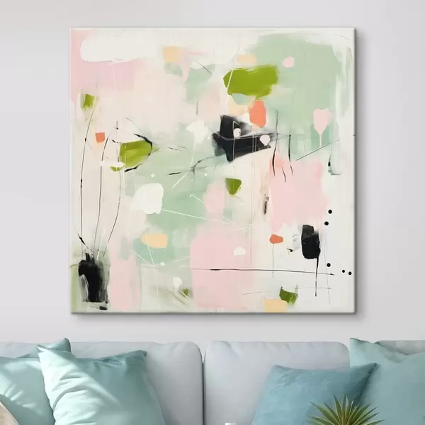 Wandbilder Rosa und Mint, pastellfarbene Pinselstriche s46324