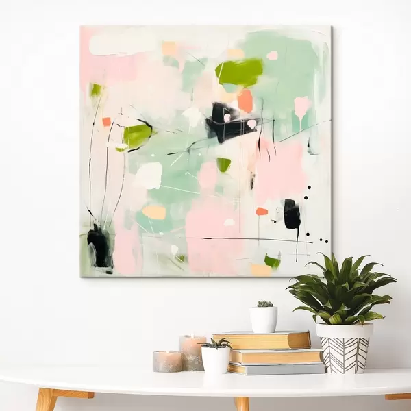 Wandbilder Rosa und Mint, pastellfarbene Pinselstriche Art. s46324